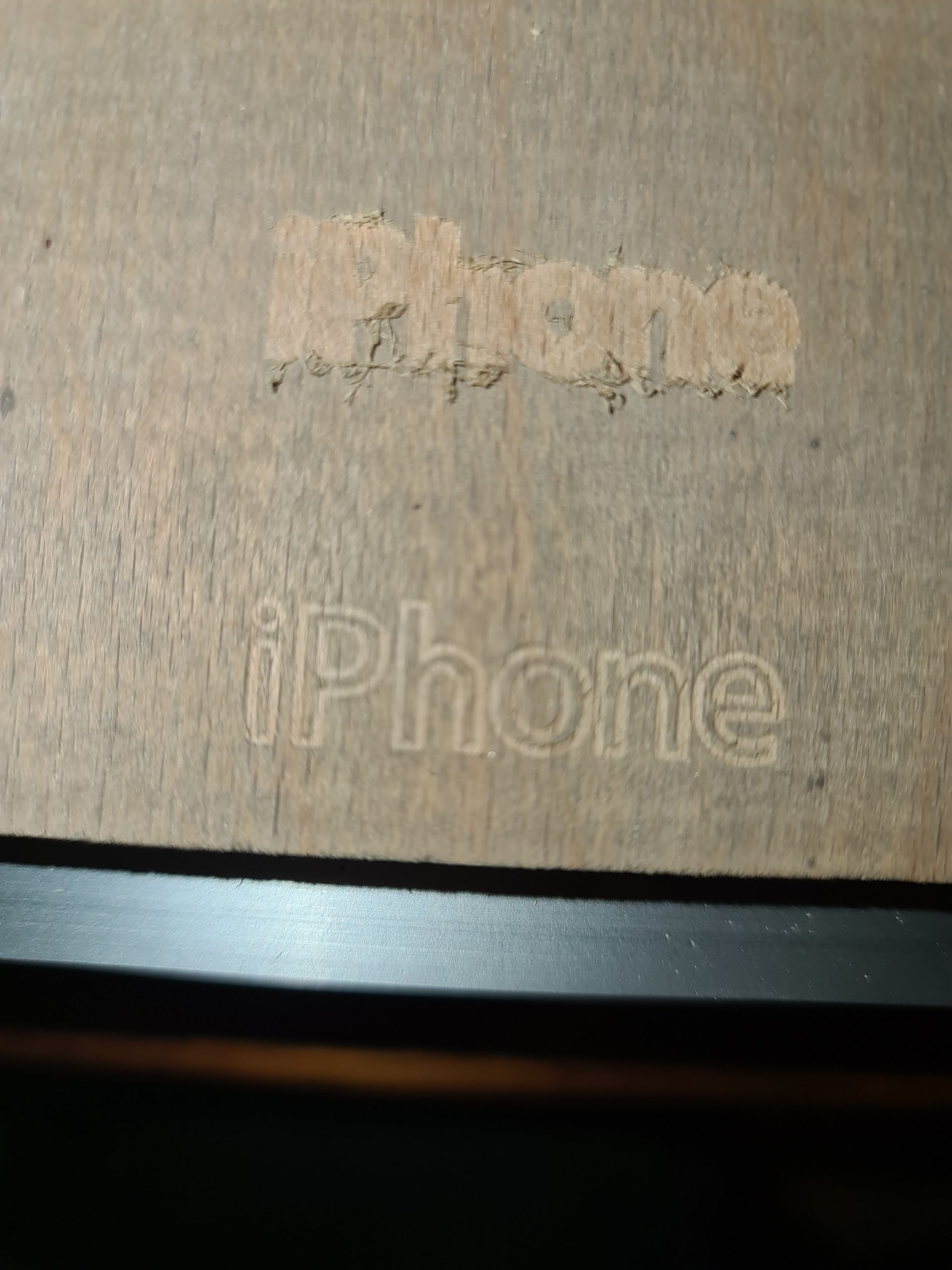 Erster gravur Versuch, erst zu großen fräse bohrer oben . Und unten zu sehen dann den kleinsten und es klappt .